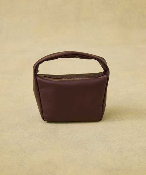 ■デザイン・スタイリングスクエアタイプのハンドバッグです。ボディから続いたハンドルがポイント。取り外し可能なショルダーストラップ付きなので、用途に合わせてご使用いただけます。コンパクトですがマチがしっかりついているので、見た目以上に荷物も入り、使い勝手の良いバッグです。 ■素材シボ感が少なく、地厚ですがしなやかなレザーを使用しております。上品な光沢感があり、高級感のある素材です。