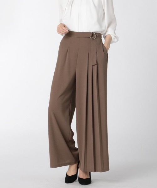 ■素材特徴 ドレープ感のある綺麗目なカットジョーゼットを使用しています。シワが入りにくく、お手入れが簡単な素材です。 ■デザイン 左足片側だけにプリーツをあしらった、エレガントなワイドパンツです。ウエストを絞れるD管ベルトがアクセントになっています。バックウエストはゴム仕様で、リラックス感たっぷりです。 ■シルエット 身体のラインを拾わない、ゆったりとしたシルエットで、幅広い年代の方に着用していただけます。 ■コーディネート デザインに特徴があるので、シンプルなトップスがおすすめです。トップスインしてウエストにポイントを持ってくると、スタイルアップ効果も◎ デイリーからオフィスカジュアルまで、オンオフ兼用で大活躍します。 フィット感:ゆったり シーズン:秋冬 展開カラー:黒(ブラック)・茶(ブラウン)・スモーキーグリーン *末永く御愛用頂くために、アテンションタグ・洗濯ネームを必ずご確認の上、御着用又はお取り扱い下さい。 *光の当たる場所や高温多湿になる場所での保管は避けて下さい。 *使用の有無に関わらず、経年劣化は進行いたしますのでご了承下さい。 *生地の裁断・縫製方法により、写真と同様の柄が出ない場合がございます。 *お使いのパソコンなど閲覧デバイス・環境により質感・色味に誤差が生じる場合がございます。 予めご了承くださいませ。* ZOZOTOWN お買い物ガイド・商品のお気に入り登録 ♡をクリックしましょう!完売カラーの再入荷通知や、ラスト1点の通知、セールの通知をお知らせします。・ブランドのお気に入り登録 新商品や再入荷など、いち早くお得な情報を受け取ることができます。・最短で翌日お届け 商品をカートに入れた後、注文内容の確認ページで「即日配送」を選択していただければ、最短でご注文した翌日にお届け致します。 (ZOZOTOWNお買いものガイドをご参照ください) 【注目キーワード】ママ・母・母親・母の日・誕生日のプレゼント、ギフトとしてもおすすめ。普段使い テレワーク レディス レディースファッション コーデ ファッション コーディネート クラシック クラシカル シック 清楚 上品 エレガント きれいめ キレイめ な雰囲気で デート・婚活・女子会はもちろん オンスタイル オフィスカジュアル キャリア コーディネートまで活躍。