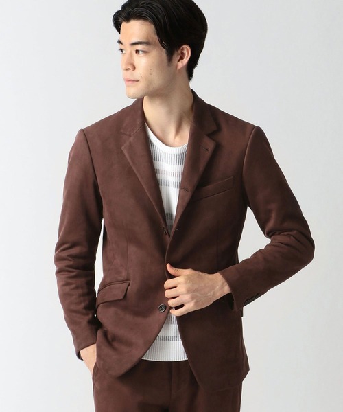 ポリエステルのマイクロファイバーで織られたカットソーのポンチ生地をスウェード起毛した素材です。キメの細かいスウェード調起毛によって滑らかなタッチ感と光沢感があり、ジャージ素材なので良く伸びてヨコ張り感もあるので綺麗なシルエットを作ります。シングルジャケットをベースに立ち衿でも着れるデザインカヴァーオールです。ストレッチ裏地を採用した袖裏付の半裏仕様で着やすく、地衿にワイヤーを仕込み、衿立てした時にアクセントをつけれる様にしています。着心地の良い素材を活かしたシャープな細身シルエットに仕上げています。更に製品で撥水加工を施して軽い雨や汚れを防ぐ効果をプラス。※撥水加工は素材の特性上、染み込み難い程度の撥水効果で、かつ永久ではありません。衣料用のデータに基づいた効果で、例えますと水がかかり、手で払ったら細かい滴状の湿潤が残る程度の効果になります。※<1464-5105>同素材のパンツを展開しています。