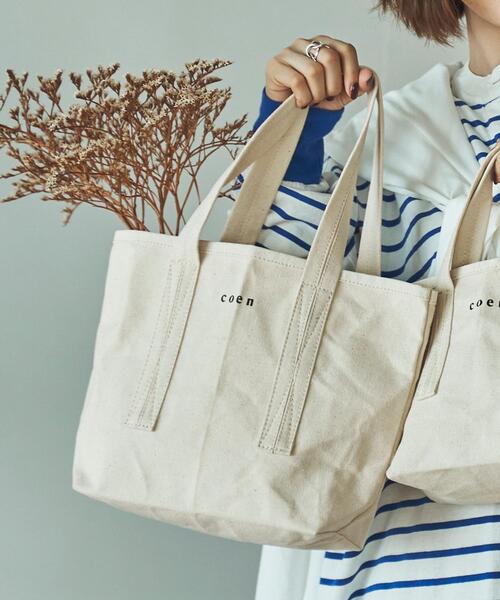~2021 FALL/WINTER COLLECTION~ 小さめのノートやメモ帳、水筒などが入るサイズ感 同シリーズでSサイズ(品番:76816180103)Lサイズ(品番:76816180105)もございます。 ■デザイン/素材 小さめのロゴプリントで提案する新しいオリジナルトートバッグ。 シンプルな形ですがショルダーのステッチを効かせポイントにしています。 糊付けをしたキャンバスでパリッと仕上げて風合いを出しております。 ■スタイリング 講習会やお買い物など、長時間のお出かけにもおすすめのサイズ感で使い勝手の良さが魅力。 肩にかけて頂けるぐらいのショルダーの長さもポイントです。 ................................ 内ポケット:無し ................................ 【注意点】 ※撮影商品はサンプルの為、実際の仕様と異なる場合がございます。 ※画像の商品は光の照射や角度、お使いのモニター環境により、実物と色味が異なる場合がございます。スタジオ物撮りの画像が実物の色味に一番近くなっております。 ※予約商品の場合、実店舗への入荷は「お届け予定」とほぼ同時期となりますが、実店舗への入荷が前後する場合もございます。 品名:SC coen ロゴ TOTE M 品番:7681-618-0104