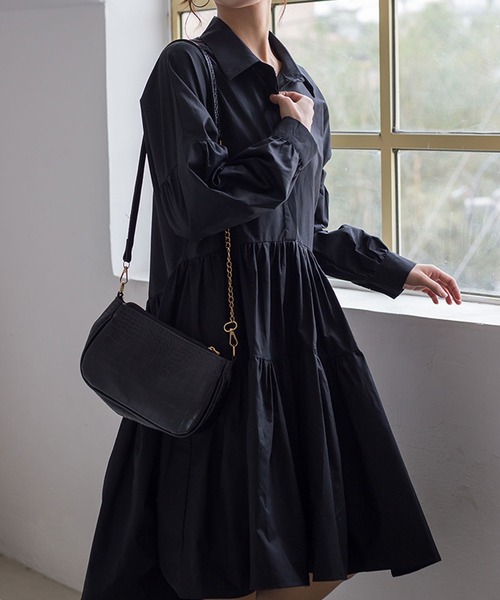 1枚でキマるしゃれ感たっぷりのティアードワンピース ■デザイン ティアードの切り替えとふんわりとしたシルエットが女性らしく仕上げてくれるワンピース。 カジュアルさと上品さがバランス良く同居したデザインに。体をすっぽりと包み、楽チンなのに1枚で可愛い活躍必至の1枚です。 POINT ・横に広がらず落ち感が綺麗なシルエット ・すっぽりと体がおさまるサイズ感で体型カバーにも◎ ・襟付きなのできちんと見えしてくれます。 ■素材 さらっとした気持ちのいい素材。 春から秋まで長く着用していただけます。 ■スタイリング 1枚でスタイルが完成しますが細ベルトをつけたり、ボトムにデニムなどを合わせて少しチラ見せしても可愛い。 カーディガンや羽織りものと合わせていただくとロングシーズン活躍します。