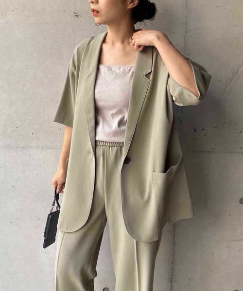 大人気のイージーストレートパンツとセットでも着れる 大人な秋ジャケットが登場! 程よいルーズさでキメ過ぎず、普段のコーデに取り入れやすい一枚です。 ・さらっと落ち感のある素材 ・5分袖で抜け感があり、晩夏から着やすい形 ・裾のラウンドカットで女性らしい印象に ・カジュアルなTシャツに羽織ってきれいめカジュアルなスタイリングに ・きれいめアイテムと合わせ、オフィススタイルにも◎ ********************** 透け感:なし 裏地:なし 伸縮性:なし 光沢感:なし ********************** ▼洗濯方法 ドライクリーニング ※撮影場所やお使いのモニター環境により若干お色味が異なる場合がございます。 特にロケの撮影では明るく見える傾向にございます。 ※商品はサンプルで撮影をしております。若干の仕様が変更になる場合がございますので予めご了承の上ご注文くださいますようお願いいたします。 ▼商品のお気に入り登録 完売カラーの再入荷通知や、ラスト1点の通知、セールの通知も受け取ることができます。 ▼ブランドのお気に入り登録 新商品や再入荷など、いち早くブランドのお得な情報を受け取ることができます。