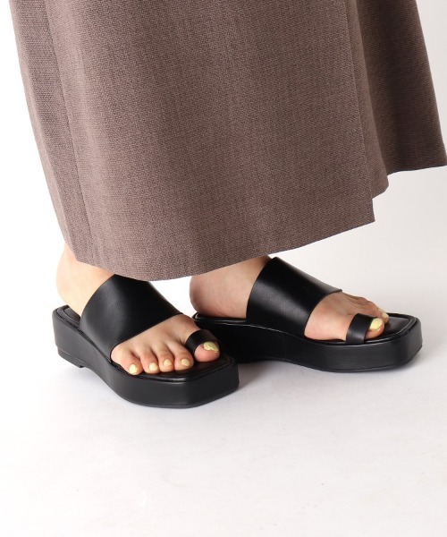 【My style is...掲載】【デザイン】スッキリとしたデザインのサムリングディティールを、トレンドのプラットフォームサンダルに載せた1足。ミュールデザインでさっと履くだけで、ボリュームのある足元を演出できます。厚底デザインですが、甲部分は深めに覆っているので歩きやすさは◎。ブラックとホワイトの2色展開でシックな夏のスタイリングに使いやすいアイテムです。足袋タイプのソックスで合わせれば、カジュアルなスタイリングにも使えます。店舗へのお問い合わせ商品番号:C71-23001●製品寸法:02(23.5~24.0cm):対応サイズ23.5~24.0cm ヒール高5cm 幅9cm プラットフォーム3cm03(24.0~24.5cm):対応サイズ24.0~24.5cm ヒール高5cm 幅9.3cm プラットフォーム3cm備考:重量:03(24.0~24.5cm)片足約315g