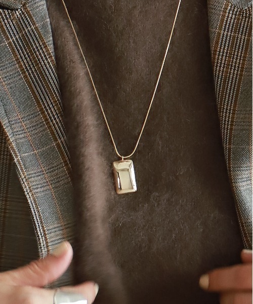 【rapiécage ラピエサージュ】 ■スクエアモチーフプレートネックレス 角を落とした滑らかなスクエアモチーフ。アクセントになる大振りサイズでありながら、プレートのような平べったいシルエットが主張の強すぎないポイントに。質感はつるんとしていてツヤがあり、着こなしを引き締めます。シンプルなカットソーやワンピースにも使いやすいロングチェーン。1つでクラスアップするボリューム感が魅力のアイテムです。 ※商品はrapiecageオリジナルBOXに入れてのお届けになります。 ※イヤリングパーツはねじバネ式で自分で調整できるので、痛みもなく安心して使用いただけます。