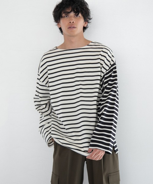 ◆素材18//USAコットンで編み立て、しっかりとした生地感に仕上げました。タフな質感ながらも、着るほどに体に馴染んできて風合いも増してくる素材です。◆デザインオーセンティックなアイテムをトレンドのオーバーサイズにモディファイさせたバスクボーダーシャツになります。