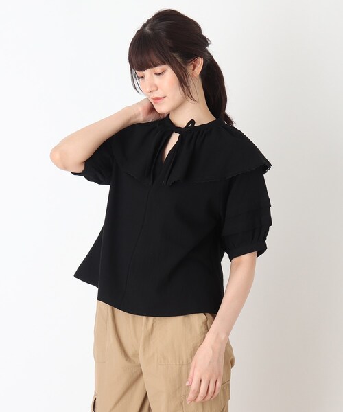 【デザイン】 今年トレンドの襟デザインがポイントのデザインブラウス。 柔らかく表情感のある素材も女性らしい雰囲気を演出してくれます。 1枚でもサロペットなどのインナーなどにも着用できスタイリングの幅も広がります。 【生地感】 ハリのあるサラッとした風合いです。 ※オフホワイト(003)はやや透け感があるため、インナーの着用をおすすめします。 【サイズ】 小さいサイズSサイズあり。 ※01(S)サイズはWEB限定サイズです。 #CutieBlonde#Cutie#cutieblonde#cutie#キューティブロンド#キューティ#20代#30代 モデル情報:身長168cm B75 W60 H87 着用サイズ:02(M) 店舗へのお問い合わせ商品番号:256-83012 ●製品寸法: 01(S):着丈55cm B97cm 袖丈39cm 02(M):着丈56cm B100cm 袖丈40cm 03(L):着丈57cm B104cm 袖丈41cm 備考: