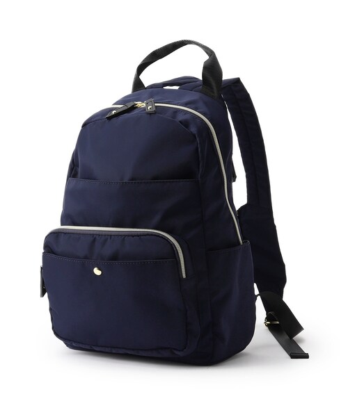 【デザイン】裏地のギンガムチェックが可愛らしい多収納のリュック。ノートPCやタブレットの持ち運びに便利なパソコンスリーブも完備しています。A4サイズもすっぽりと収まるサイズ感ながらも、ナイロンやポリエステル仕立てでバッグ自体が軽量なのも◎ショルダーストラップ部分にもポケットが付いており、取り出し頻度の高いカードや、鍵などを入れられるようになっています。【A4ファイル収納可】※ポケット数:内側×6 外側×6背面には約1 のスポンジが入っています。店舗へのお問い合わせ商品番号:F97-03907●製品寸法:00:高さ37cm 幅(上部)23cm 幅(下部)24.5cm マチ10cm 持ち手上がり6cm ショルダー対応サイズ56~101cm備考:重量:約435g