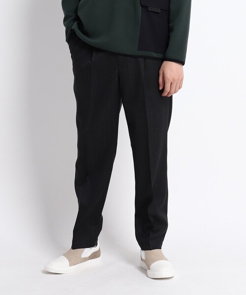 ウォッシャブルウール素材の新感覚イージーテーパードパンツ。 【デザインポイント】 リラックスした履き心地と、キレイな表面感、上品さを兼ね備えた新感覚イージーテーパードパンツ。 ウール100%の2/72ツイル素材を採用。 ウールならではの上品さやキレイな表面感、落ち感が特徴的。 洗濯機で洗えるのはうれしいポイント。 計算されたテーパードシルエットはだらしなく見えない大人なリラックスシルエットに。 ウエストはベルトなしで履けるイージー仕様で、リラックスシーンで最適なアイテムです。 ※ポケット数:横×2、後ろ×2 【素材・特性】 ウォッシャブル加工を施したウール100%のツイル素材。 ※裏地なし こちらの商品は主に秋に着用いただける商品です。 モデル情報:身長178cm B85 W70 H88 着用サイズ:03(L) 店舗へのお問い合わせ商品番号:070-73058 ●製品寸法: 01(S):W71cm 股下69cm 前股上28cm 渡り幅34cm 裾幅17cm 02(M):W74cm 股下71cm 前股上28cm 渡り幅35cm 裾幅18cm 03(L):W78cm 股下71cm 前股上29cm 渡り幅36cm 裾幅18cm 04(LL):W82cm 股下73cm 前股上29cm 渡り幅37cm 裾幅18cm 備考: