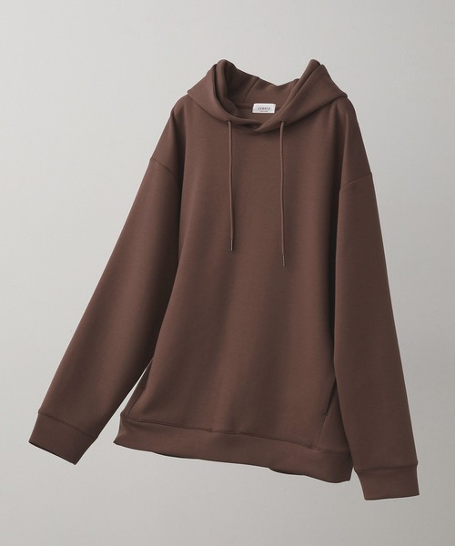 【 触りたくなるソフトタッチ 】フライシルケットプルパーカー ■素材、機能 触りたくなるタッチ感で優しく体を包んでくれるダンボール素材です。 上品な光沢感と滑らかなタッチでシワにもなり辛く長時間着用しても疲れないのが特徴です。 あたりがよく快適に着用できます。しなやかなでソフトタッチなので一般の裏毛よりも着心地が抜群に良くストレスフリーな素材です。 ■シルエット、デザイン ややルーズなサイズ感でもクリーンで好印象な着こなしが出来ます。またポケットも脇切替利用のシームポケットになっておりミニマルなデザインになっております。 ■カラー トレンドのくすみカラーで合わせるだけで今っぽい着こなしが出来ます。アウターのインナーにも映えるカラーリングです。 ■スタイリング プルパーカーというカジュアルなアイテムでありながらデザイン、素材がクリーンな印象のため、キレイめのコートとの合わせがおすすめです。 イージーパンツと合わせてもだらしなく見えないのでおうち時間にも最適です。 裏地:なし 透け感:なし 伸縮性:あり 生地感・厚さ:普通 ポケット:脇ポケットあり その他仕様:なし 【モデル着用サイズ】 MEN:身長177cm 着用サイズL WOMEN:身長164cm 着用サイズL