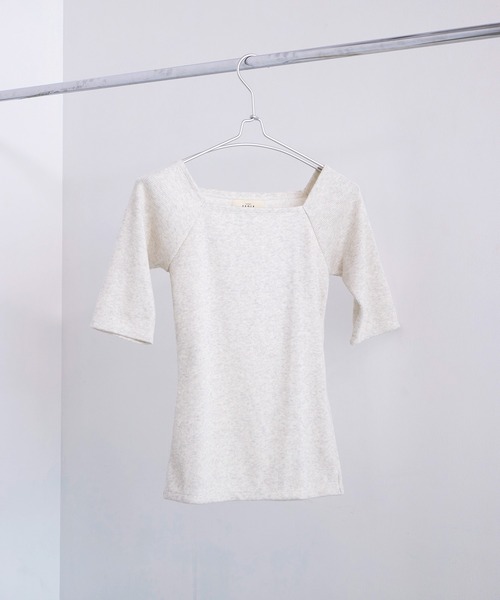【鎖骨がきれいに見えるスクエアネック】 ・柔らかい着心地のソフトリブコットン ・幅広い季節に着られる五分袖 ・肩回りがきれいに見えるスクエアネック ・インもしやすい長めの着丈 細リブで着心地がよく、伸縮性抜群。 どんなボトムにも合わせやすくベーシックなアイテムです。 ※商品画像はサンプルのため、色味やサイズ、仕様等に変更が生じる場合がございますので、予めご了承ください。 モデル身長:156cm 裾幅:72cm 袖口:22cm