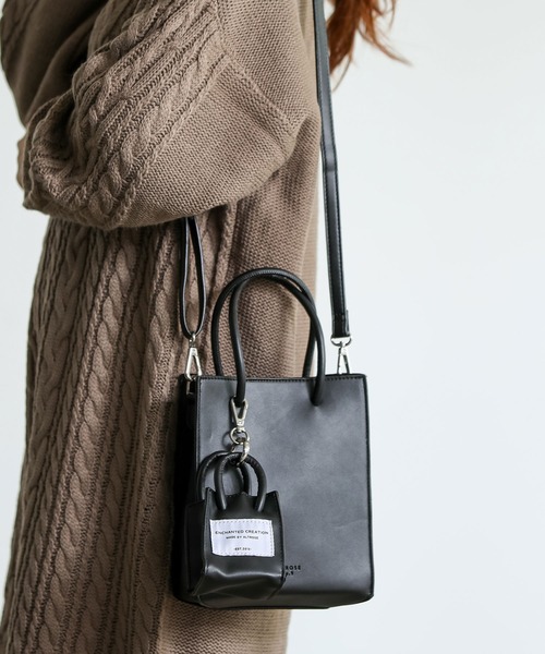 付属のミニバッグが可愛い2WAYバッグ。 ・これひとつでトレンドファッションが完成する万能アイテム。 ・ゼブラ柄はあたたかみのあるフェイクファー素材を使用。 ・持つだけでシーズンムード高まるスタイルに格上げしてくれます。 ・気分に合わせてショルダーを取り外しでき、ミニトートバッグとしてもお使い頂けます。 ・ちょっとしたお出かけにちょうどいいサイズ感で、旅行のサブバッグとしても◎ ・シンプルなカラーからコーディネートの主役になるようなカラーまで幅広く取り揃えました。 ・ミニバッグには除菌アイテムやエコバッグが収納可能! 【素材】 ブラック・アイボリー・グリーン:合成皮革 ゼブラ:フェイクファー×合成皮革 【サイズ】 【本体】 幅:16.5cm 高さ:20cm マチ:8.5cm ショルダー:59cm~110cm 持ち手高さ:10cm 【ミニトート】 幅:7.5cm 高さ:9cm マチ:4.5cm 【仕様】 開閉:マグネット 【重さ】 合成皮革(ブラック、アイボリー、グリーン)約370g フェイクファー(ゼブラ)約300g 【原産国】 中国 【ご注意】 ・お客様のモニター環境や、お部屋の照明・日当たり具合などにより、実際のお色味と異なる場合がございます。 ・サイズ・重さは、平置き・メジャー採寸のため、商品ごとに多少の誤差が生じる場合がございます。 ・プリント・型押し加工などの柄物は、裁断位置により一点一点表情の違う仕上がりになります。 ・生産時期により、色・サイズ・デザインが多少異なる場合がございます。 ・製造工程の関係上サイズ感には若干の個体差がございます。 アパレル、ストールなどの布製品【約-2cm~+2cm】 ニット製品【約-3cm~+3cm】