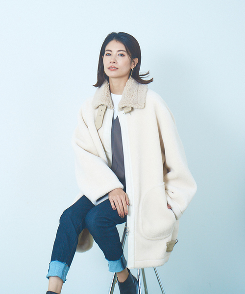 ベルトと襟部分の異素材感と配色が可愛いボアコート。ボリューム感があり、ややオーバーサイズでトレンドのシルエットが魅力。 身頃は細やかなボアを使用し、上品カジュアルな印象に。 襟はボリュームを出すために、あえて粗めのボアを使用したこだわりの詰まった一着。 ボリーミーなボアコートはパンツ合わせで、メリハリのあるきこなしがおすすめ♪ 着るだけでこなれスタイルが完成する主役コートです。 【Verseau/ベルソー】 フレンチシックベースなオリジナルアイテムをクリアーなカラーと上品なリラックススタイルですべての女性たちへ提案致します。