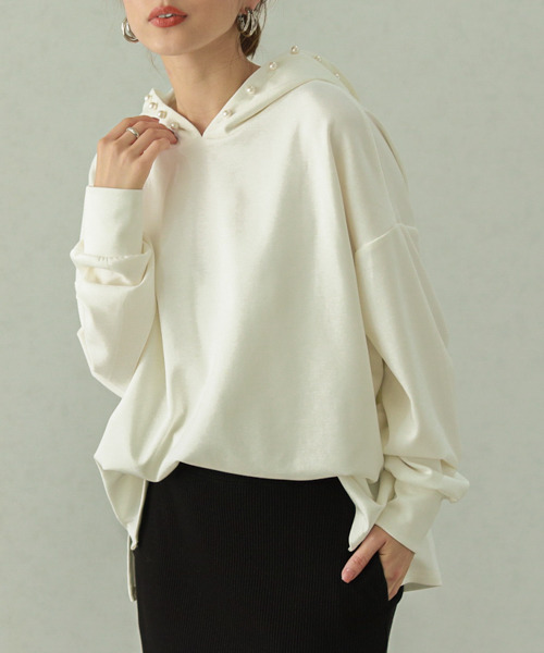 女性らしくきれいなシルエットのパール付きフーディ♪ パールをプラスで甘さを加えた大人フーディの登場!! 弾力のあるもちっとした素材でサラッとした質感がクセになる◎ ストンと落ちるシルエットで大人カジュアルに着こなせます! クセになる着心地はたまりません!! ◆商品のお気に入り登録◆ 気になるアイテムをお気に入り登録しておけば セールの通知・ラスト1点になった時の通知や、再入荷通知を受けることができます☆ ◆ブランドのお気に入り登録◆ ブランドのお気に入り登録をしておけば 新商品の発売や再入荷、タイムセールやクーポン発行のお知らせなど、SUGAR BISKETがお届けするお得な情報をいち早く受け取ることができます☆