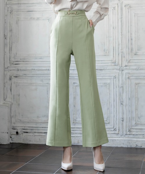 ↓ストレートタイプはこちらの番号で検索! 59926178 センターシームですらっとした脚長スタイルを演出するハイウエストパンツ。 フロント部分のビットが上品なアクセントに◎ 後ろゴム仕様なので、ノンストレスな履き心地も魅力。 ストレッチがあり、程よく厚みのある素材を使用しました。 【カラー】ブラック・ベージュ・ライトベージュ・グリーン系(ピスタチオ) 【サイズ】ONE 【素材】ポリエステル95%・ポリウレタン5% 【透け】無し 【裏地】無し 【ストレッチ】やや有り 【ポケット】有り 【ファスナー】無し ※ご使用のモニターや周囲の環境により実際の商品と多少色味が異なる場合がございます。 ※モデル画像はイメージです。実際の商品に近い色味は商品単品の画像をご確認下さい。 ※生産時期によりカラーやサイズに多少の誤差が発生する事がございます。 ※密閉した状態で商品を入荷しておりますので、店頭にある商品とは違い匂いが多少強く感じられるものもございます。 数日のご使用や陰干しなどで気になる匂いはほとんど感じられなくなりますので、お試しいただきますようお願いいたします。 ■商品のお気に入り登録■ 完売カラーの再入荷や、セール、ラスト1点など通知を受け取ることができます。 ■ブランドのお気に入り登録■ 新商品や再入荷などの情報をお知らせいたします。 是非、お気に入り登録をご活用下さい。