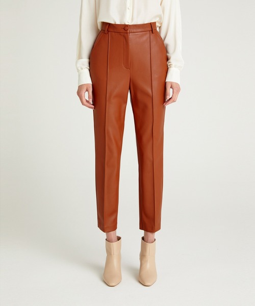 コーディネートにエッジィな雰囲気をプラスしてくれるフェイクレザーのキャロットパンツ。センタークリースが縦の線を強調し、レッグラインをすっきりと引き立てます。シフォンブラウスやニットセーターなどを合わせ、異素材ミックスを楽しむのもおすすめです。 まずは【お気に入り登録】を。商品の情報がお届けしやすくなりました♪ ご購入後はぜひWEARへのコーディネート投稿♪ お待ちしております。