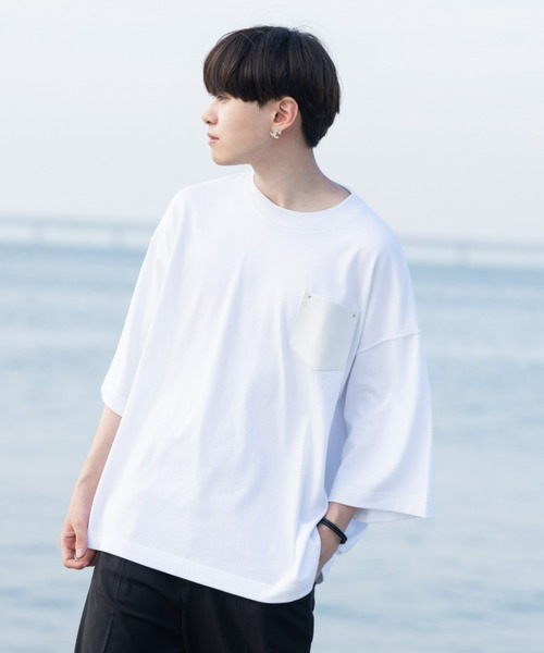 【EDEL - レザーポケットビックT】高級感のあるシンセティックレザーのポケットにこだわったハイセンスなTシャツが登場[素材]綿100% 280g/㎡の肉厚スムースを使用。風合いがやわらかく、天竺地よりもキメが細かい生地なので綺麗目スタイルにピッタリな素材になります。胸元のポケットを身頃同色のシンセティックレザーにすることで、デザイン性が高く高級感を出しました。リベットもアクセントになっていて1枚でもおしゃれに着用出来る商品です。 [デザイン]ポケットをシンセティックレザーにすることで高級感を演出し、目を惹くワンポイントに。韓国系ファッションに留まらず昨今のトレンドでもあるゆったりとしたビッグシルエットを採用。袖丈は肘が隠れる長さにすることで1枚でも気軽に着用いただけます。カラー展開は定番のブラックとホワイトの2色展開。ボトムスはスキニーからワイドまでマッチするので着こなしの幅が広がります。シンプルなデザインなのでどんなスタイルにも合わせ易く、丈バランスで色々な着こなしを楽しめる是非1着持っておきたいアイテムです。 ※屋外での撮影画像や光の当たり具合で色味が異なって見える場合がございます。商品の色味はスタジオでの詳細画像をご参照下さい。 [ EDEL - (エーデル) ] EDELとはドイツ語で”高貴な”という訳「高貴さの表現」をコンセプトに他と一線を画すデザインは上品さを物語るEDELならではの雰囲気を楽しめます。 ▼商品のお気に入り登録完売カラーの再入荷通知や、ラスト1点、セールの通知をお知らせ致します。▼ブランドのお気に入り登録新商品や再入荷など、いち早くブランドの情報を受け取ることができます。 是非ご利用頂き、お買い物をお楽しみ下さい。