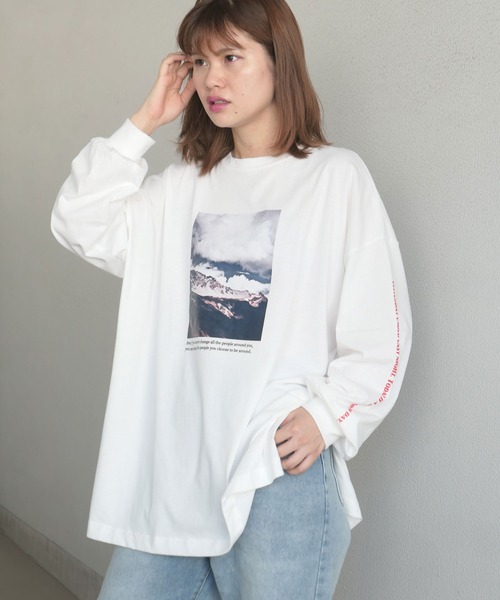 袖のカラーロゴプリントとフォトプリントが大人カジュアルにぴったり ▽生地感 透け感:あり 〇〇●〇〇 なし 生地の厚さ:厚い 〇〇〇●〇 薄い 裏地:なし 伸縮性:あり ◆商品のお気に入り登録 【お気に入りに登録】を是非ご活用ください。 再入荷の通知や、ラスト1点の通知、セールの通知がいち早く届きます。 ◆ブランドのお気に入り登録 新商品や再入荷など、いち早くブランドのお得情報が届きます。 ◆ATTENTION◆ ※取り扱いについては、商品についている品質表示でご確認ください。 ※出来る限り忠実に再現するよう務めておりますが、 ディスプレイ画面などの環境上、店頭・屋外での撮影画像は、 光の当たり具合で色味が違って見える場合が あります。ご了承下さい。 ※こちらの商品は水や雨に濡れたり、汗による湿気、乾燥状態での摩擦により、薄い色の衣服などに 色移りする可能性がございます。 予めご了承いただき、ご使用の際にはご注意くださいますようお願い致します。 ※平置きでの実寸のため若干の誤差が生じる場合がございます。 ※生産時期により若干の色ブレやサイズの変動が生じる場合がございます。 ※また製品加工上、お手元に届く際に匂いが生じる場合がありますが、 ご使用を続けていく事により匂いは軽減されます。 ※輸送時による、多少の汚れ・シワがある場合がございます。