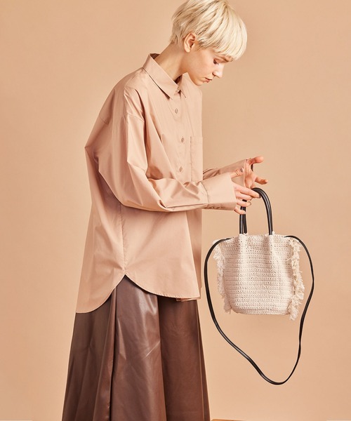 小ぶりながら抜群の存在感 モードにきまるニットバッグボトムに折り込んだマチが広がりフォルムが変化する、LAUGOA定番ディティールの2wayショルダーバッグ。サイドに配したフリンジがシンプルなルックスに遊び心を加え、やさしい表情のニットにモードなエッセンスをプラス。アウターの上からでも存在感がありコーディネートのアクセントに。ボディに対してマチを広めにとることで、荷物を入れたときにコロンとしたフォルムが生まれてかわいらしい。DETAIL POINTボディはコットンヤーンを手作業で編み立てたフラットな編地。ショルダーは取り外し可能で斜め掛けもできる長さ。ハンドルはアウターの上からも腕に通すことができて使いやすい。開口部はマグネットで閉じることができる仕様。内装にはポケット付きで、底板は取り外して使うことも可能。■素材:クラフト感あるコットン素材■サイズ感:長財布対応・500mlペットボトル縦向き可■ポケット:内側1か所■開閉:マグネット■重量:422g■サイズ:幅22cm/高さ22cm/まち0-12cm/ハンドル立上り12cm/ショルダー長さ115cm■素材:表地 綿 付属 合成皮革 ■原産国:中国店舗へお問合せの際は下記の商品番号をお伝えください。商品コード21526-12002※商品の画像はサンプルのため、実際の製品とは、仕様や加工、サイズ等が若干異なる場合がございます。= お気に入り登録「♡」がおすすめ! =LAUGOAのお得な情報をいち早くGETできます◎❤:アイテムをお気に入り⇒ SALE START / 完売COLOR再入荷 / LAST1点 etc...❤:ブランドをお気に入り⇒新商品 / 再入荷 / クーポン・セール情報 etc...