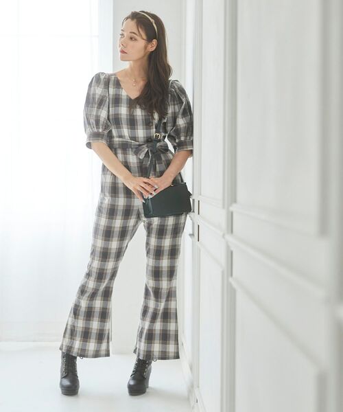 程よくタイトなシルエットで、1枚でサマになるオーバーオールのお目見え♪ カシュークールデザインが、デコルテラインをすっきりと綺麗に魅せてくれます◎ バッグやシューズ、合わせる小物によって雰囲気を変えることができるのもpoint!