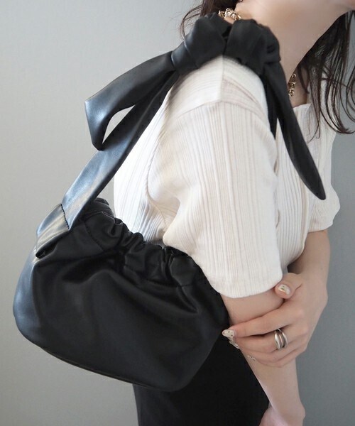レディライクなギャザーとコロンとした丸いボディが特徴的なワンハンドルバッグ。手や腕にかけてそのまま持ちでもいいですし、一度手を通して握る持ち方でもおすすめです。内ポケットもついており、小物などの収納性も抜群です。