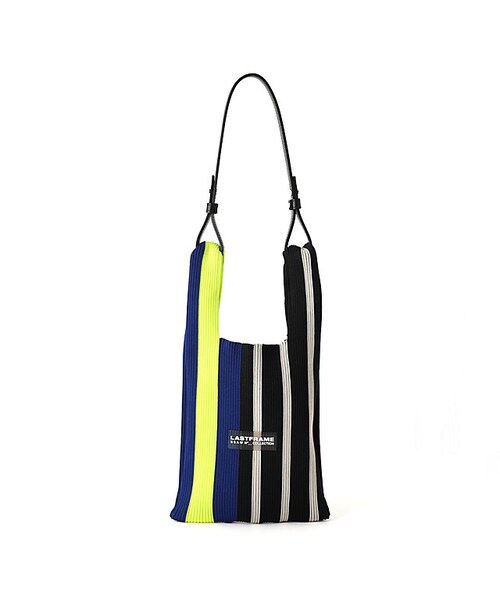 【LASTFRAME(ラストフレーム)】しっかりとした張りとボリュームを持たせるため、伸縮性のある別注で作られたポリエステルの撚糸を使用。日本国内に数台しかない特殊な編み機を使用し、通常の編み機では再現できない細かな柄表現が可能。その特性を活かし、インターシャ網で細かな柄を編み立てている。本体がリブ組織であることから横への伸縮性も十分にあり、コンパクトでありながらも使いやすさが特徴のニットバック。■LASTFRAME「世界最高レベルの日本の伝統技術を未来に継承する」デザイナー奥出 貴ノ洋が経験してきた世界中の様々なカルチャーをベースに、メイドインジャパンに拘り表現した日本発2018年AWスタートのブランド。中でも職人の数が年々減少している伝統技術にフォーカスを当て、デザイナーのフィルターを通した現代的解釈により、これまでにない独自のデザインで表現している。日本の伝統技術を継承しながらも、国・時代・シーズン・性別など何ものにもとらわれることなく、ボーダーレスに愛され続け、そして受け継がれるデザインを目指し、メイドインジャパンのラグジュアリーブランドとして世界に発信する。LASTは「最後」と「存続する」という異なる意味を持つ。消えゆく日本の職人技術を・伝統技術を「フレーム」に収め、デザイン・プラダクトとして昇華させ、存続させていく。LASTFRAMEとはブランド名であり、「世界最高レベルの日本の伝統技術を未来に継承する」その活動自体を意味する。