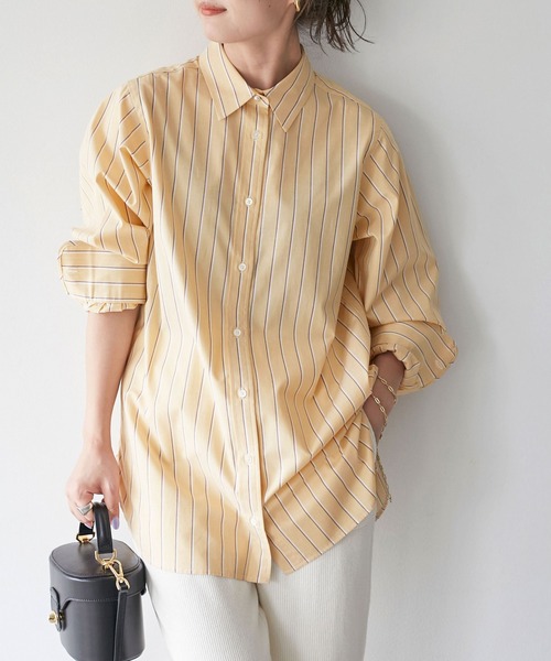 【2021AW】 SLOBE IENA メイドインジャパンのシャツ地を使用。 長くご愛用頂けるような素材にこだわりました。 着回しやすいホワイトと、遊び心溢れるストライプをご用意。 襟ぐりと袖口にはパールボタンを効かせ、大人可愛いデザインに。 秋は1枚でさらりと着て頂くのはもちろんですが、 冬にはレイヤードしてパールボタンを覗かせるのがお勧めです。 さりげなくスタイリングをブラッシュアップしてくれる、 1着持っていると大活躍間違いなしのイチオシアイテムです。 ********************** 透け感:ほぼなし 裏地:なし 伸縮性:なし 光沢感:なし 生地の厚さ:普通 ********************** 【スタッフ着用コメント】 《スタッフ名:Sally》 年齢:30代前半/身長:162cm/体型:細身/普段サイズ:M/着用サイズ:フリー サイズ感:ヒップがすっぽり隠れる着丈。オーバーサイズすぎないのでニットやスウェットとのレイヤードにも便利です。 素材感:ハリのある素材。きっちり見えします。 着心地:サラッとした肌触りでストレスフリー。きゅうくつ感もありません。 ********************** 《スタッフ名:ayumi》 年齢:20代半ば/身長:159cm/体型:細身/普段サイズ:S〜M/着用サイズ:フリー サイズ感:程よくゆとりがありますが、すっきりと着れます。丈はやや長めです。 素材:さらっとした素材で、あまり透け感が気にならない綿素材です。 着心地:シーズンレスで着れる素材で、快適です。前後差のある丈感で着易いです。 ********************** ※取り扱いについては、商品についている品質表示でご確認ください。 こちらの商品は、SLOBE IENAでの取り扱いになります。 直接店舗へお問い合わせの際はSLOBE IENA店舗へお願い致します。 ※照明の関係により、実際よりも色味が違って見える場合があります。 またパソコン・スマートフォンなどの環境により、若干製品と画像のカラーが異なる場合もございます。 予めご了承ください。 洗濯:手洗い可