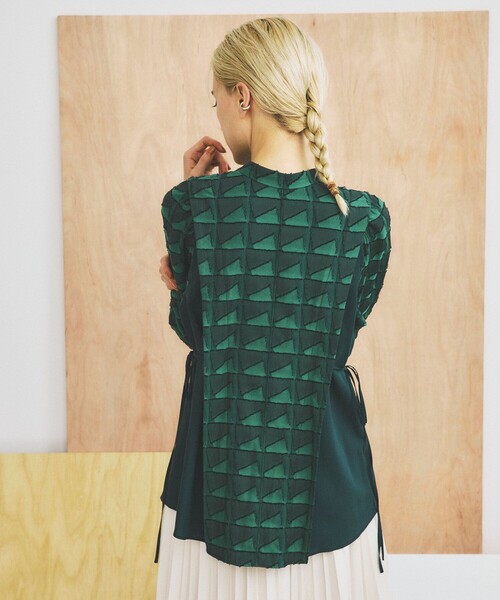 一枚で華やかな印象に!ジャガード2WAYシャツ ―Fabric― 幾何学模様が印象的なジャガード素材を使用。 レーヨン混でしっとりと落ち感があり、心地良く着て頂けます。 手洗いが可能でご自宅でのお手入れも簡単です。 ―Detail― フリンジジャガードが目をひく華やかなブラウス。 幾何学模様と秋口に馴染むカラーリングで甘くなりすぎない一枚です。 前後着用可能な2way仕様なので、その日の気分に合わせて前でも後ろでもお好みで着て頂けます。 両脇の紐でウエストを程よくシェイプでき、女性らしい着こなしを楽しんで頂けます。 サイドは無地生地切替となっており、すっきりとした印象に仕上げました。 ―Styling― ヒップにかかる着丈でなので、パンツにさらりと合わせるスタイリングがオススメです。 デニムでカジュアルに、スラックスパンツできれい目にも。合わせるボトムスで様々な雰囲気で着回し頂けます。 シャープラインミドルブーツを合わせた秋らしいスタイリングにも相性抜群です。 <INella> INにはintuition(直感)・instinct(本能)という想いを込め、彼女(スペイン語)をかけた造語。 「直感的感覚にふれる」ことをテーマに自然体でFASHIONを楽しむ現代女性に寄り添うブランド洗練された女性らしさとモダンを掛け合わせたオリジナルフェミニティをベースに着る人によって表情を変え、その人の個性と共存するワードローブを展開します。 【お買い物をよりお楽しみいただく為に】 ▼商品のお気に入り登録をおすすめします! ♡をクリックしてください。 完売カラーの再入荷や、ラスト1点の通知、セールの際の通知を受ける事ができます。ブランドのお気に入り登録もご一緒にお願い致します。