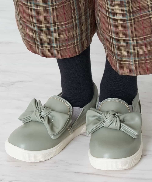 ◆大きいリボンがポイントの楽ちんスニーカー◆ 大きめなリボンがポイントのスニーカー。 フェイクレザーの素材と可愛いカラー展開で、カジュアルにもちょっとしたお出かけにも使える万能アイテム。 秋冬のお洋服にもなじむ、少しくすんだミントとラベンダーの2色展開。※WEB・一部店舗限定販売です。