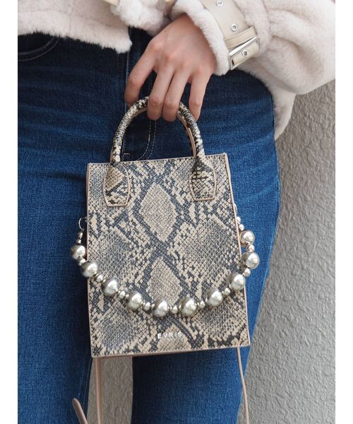 ボールチェーンがポイントのショルダーバッグです。 パイソン柄でEVRIS(エヴリス)らしいデザインになっています。 マチもしっかりあるので荷物も十分に入ります。 ※若干丸みを帯びているので真四角に修正になります。 ※詳細画像が正規の商品となります。