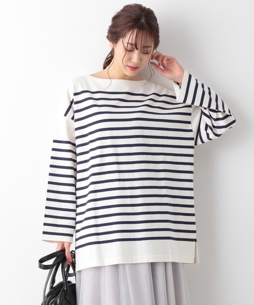 程よいワイドシルエットの名品ボーダー♪サマ見えトップスの王道とも言えるバスクボーダーの長袖を使える3色でご用意しました。程よいワイドシルエットにこだわった名品ボーダーです!チュニック丈なので細身のパンツやタイトスカート、デニムとの相性もバッチリです。