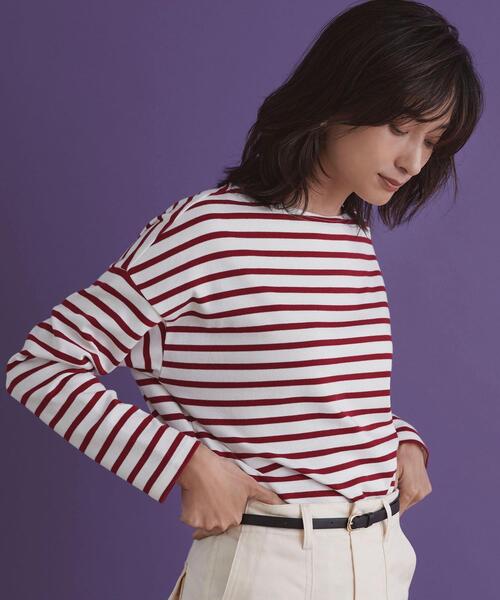 ■WEB限定■一枚でサマになる今年らしいオーバーサイズのボーダーカットソー■デザイン肌離れの良いサイズ感に大胆なドロップショルダーや、さりげないドルマンスリーブがデザインポイント。リラックス感のあるゆったりとしたサイズ感ながらも、デコルテを綺麗に魅せるネックラインが女性らしい印象へ仕上げます。ヒップに被るくらいのやや長めの着丈にサイドスリットを施したことで抜け感がプラスされ、さらりと着こなせる大人らしいアイテムです。■素材ややハリのある綿100%の素材でお作りしました。ほど良い肉感が秋口にぴったりです。■コーディネートデニムやレギンスなどカジュアルなアイテムと合わせていただきたい一枚。タイトやロングなど、バランスが取りやすいスカート合わせもおすすめです。============================裏地:なし透け感:なし生地の伸び:あり光沢感:なしケア方法:手洗い可============================<closet story(クローゼットストーリー)>フレンチシックとブリットモダンがテーマのオリジナル企画レーベル。若々しさと可愛らしさをもったエレガントなスタイルをベースに、都会的で今日を生きる女性が「自分らしさ」を大切にしたいときに揃えたいアイテムを提案します。【注意事項】※商品を使用前に、タグ等に記載されている「取り扱い上の注意書き」、「洗濯表示」を必ずご確認ください。※商品画像は、光の当たり具合やパソコンなどの閲覧環境により、実際の色味と異なって見える場合がございます。予めご了承ください。※商品の色味の目安は、商品単体の画像をご参照ください。店舗へお問い合わせの際は、全国のTHE STATION STORE各店舗まで下記の品名/品番をお申し付け下さい。品名:★★CSC C バスクBOR DLMN 品番:6912-699-0196