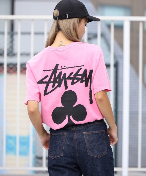 STUSSY/ステューシーから、CLUB PIG.DYED TEEが新入荷!オールド定番アイコンがインパクト大で配された最新復刻Tシャツ。フロントとバックにクラブデザインがON。インパクトがあるのでコーデの主役になってくれる一枚です☆後染め、ユーズド加工を施しており、古着っぽく着用できます。ラバープリントは、長年愛用することでひび割れしてくるので、自分なりの一枚を楽しめます。生地は、コットンならではの吸収性で着心地抜群です。ストリートブランドを代表するステューシーのTシャツは、トレンド問わず楽しめます♪サイズは、USサイズの為、日本サイズより1サイズ程大き目です。ディッキーズ874などのワークパンツや、イージーパンツ、ジョガーパンツなど様々なボトムスとマッチします。※製品染めのため、色の出方や風合い、サイズにそれぞれ個体差があります。本品は色落ちしますので、他の衣類との洗濯は避けてください。汗や雨で湿った場合、摩擦により他の物に色が移る事がありますのでご注意ください。また、濡れたままの着用、放置は避けて下さい。商品の特性上、色落ちしますが、品質上問題ありません。【STUSSY】ステューシー(STUSSY)とは、1982年にカリフォルニアでサーフボードのシェイパーだったショーン・ステューシー氏が設立したスケーター・ブランド。設立当社は友人にオリジナルのTシャツを作成していた程度だったが、彼の店はスケーターたちの集まる有名店になっていく。1985年にはEZ(イージー)パンツやドクロのプリントシャツが話題を呼び、1991年頃にスラッシャー・ブームに乗って大ブレイクした。また一方で、デザインにはラップミュージックから生まれたアイデア「サンプリング」手法をいち早く取り入れ、DJやラッパー、ハードコアパンクなどのミュージシャンたちに愛用されクラブシーンのマストアイテムとしての地位も確立していった。いまやストリート系ブランドのカリスマ的存在になっており、後の「裏原宿カルチャー」にも多大な影響を与えたことでも有名である。