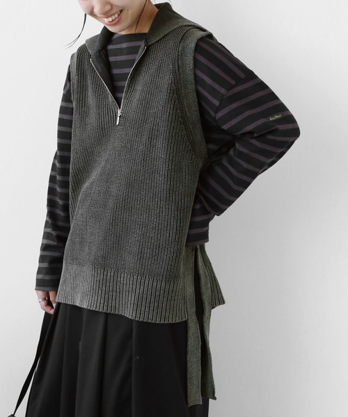 【2021AW】 JOURNAL STANDARD relume ◆色落ち感がポイントの製品染めジップベストが登場。 程よい色落ち感のあるカラーリングがこなれ感を演出してくれる1枚。 ニットながらコットン100%なのでチクチクせず、 ストレスフリーな着心地も魅力的です。 襟付きなのでカジュアル過ぎず、 デイリー使いはもちろん、お出かけにも◎ シンプルにカットソーやシャツ、 ワンピースとのレイヤードもおすすめです。 同シリーズで 製品染めクロップドカーディガン◆(品番:21080462513030) 製品染めVネックベスト◆(品番:21080462515030)のご用意もございます。 ※取り扱いについては、商品についている品質表示でご確認ください。 ********************** 透け感:なし 裏地:なし 伸縮性:あり 光沢感:なし 生地の厚さ:普通 ********************** 【スタッフ着用コメント】 《スタッフM》 年齢:20代後半/身長:160cm/体型:普通/普段サイズ:M/着用サイズ:FREE サイズ感: ほど良くゆとりがあります。 素材感:コットン素材のニット生地。 着心地: チクチクしないのが嬉しいです。ストレスフリーな着心地。 ********************** ※店頭・外での撮影画像は、光の当たり具合で色味が違って見える場合があります。 商品の色味は、スタジオ撮影の画像をご参照ください。 洗濯:手洗い可