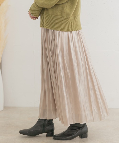 毎シーズン好評のシャイニープリーツスカートが秋カラーとなって再登場!今回はスタイリングに取り入れやすいアースカラーでの展開◎プリーツ特有の縦ラインで細見せ効果&ウエストゴムの楽な履き心地が嬉しいポイント!角度によってキラキラと光る光沢感のある生地で高見え効果にも期待のオススメのスカートです。 ----------------------------- 《スタッフ着用コメント》 [スタッフA] 年齢 : 20代後半, 身長 : 152cm, 体型 : 普通/骨格ストレート パーソナルカラー : イエベ春 普段の着用サイズ : トップスS~L/ボトムスS 【着用カラー/サイズ】L.BRN/FREE 【サイズ感】152cmの身長でスニーカーでも地面にすらず着用ができるスカートでした!ウエストはゴムで、程よいフィット感なのでストレスフリーで履けました(^^) 【素材感・着心地】光沢のある生地でカジュアルなTシャツと合わせてもトレンド感が出ます!ポリエステル素材のさらさらとした着心地で、今から秋にかけて長く使えるアイテムです◎ 【その他】今回は、ゆったりとしたカジュアルなTシャツと合わせましたがコンパクトなトップスと合わせてきれいめコーデとしても着回しが可能です~! [スタッフB] 年齢 : 20代後半, 身長 : 157cm, 体型 : 普通/骨格ストレート 普段の着用サイズ : トップスS~L/ボトムスS 【着用カラー/サイズ】CHA/FREE 【サイズ感】157cmの身長でヒールを履かなくても底につかない丈間でした~!ウエストもゴムになっているので、楽に着用できます^^ 【素材感・着心地】さらっとした素材なので、ニットと着用しても抜け感がでて可愛いです~◎シーズン問わずに着用して頂けると思います~!! 【その他】プリーツスカートなので歩くたびに動きがでてくれ、色々な見え方を楽しんで頂けます>----------------------------- ※この商品は、プリーツ加工を施してありますが、永久的なものではありません。着用やクリーニングを繰り返すことによって、プリーツが弱まりますので予めご了承ください。 ※商品画像は、光の当たり具合やパソコンなどの閲覧環境により、実際の色味と異なって見える場合がございます。予めご了承ください。 ※商品の色味の目安は、商品単体の画像をご参照ください。 ▼お気に入り登録のおすすめ▼ お気に入り登録商品は、マイページにて現在の価格情報や在庫状況の確認が可能です。 お買い物リストの管理に是非ご利用下さい。 ----------------------------- 透け感:なし 伸縮性:なし 裏地:あり 光沢:あり ポケット:なし -----------------------------