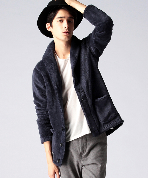 存在感と保温性を両立したファッション性に優れたアイテム 柔らかく軽い着心地と、ボリュームのあるショールカラーが特徴のカーディガン。秋は勿論のこと、冬場はインナーとしても活躍が期待できます。ショールカラー仕様なのでカットソー、シャツどちらでも合わせていただけます。 リラックス感がありつつ、大人顔。ついつい手が伸びる。そんなカーディガンです。 model H180 B86 W70 H86 着用サイズ:LARGE