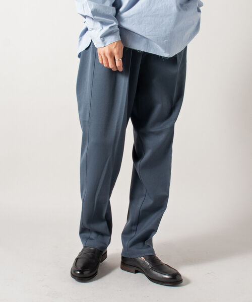 【GLOSTER】ツータックトラウザー ワイドテーパードパンツ / タックパンツ / ワイドパンツ深いインタックが印象的なトラウザーズ。深めのタックによりワタリにはボリューム感がありながらも裾にかけて美しくテーパードの効いたシルエットです。クラシックなディテールながらジャージに近い柔らかな素材感で良い感じの抜け感もあり、カジュアルなスタイリングで合わせやすい一本です。【生地感】--------------------------透け感:なし裏地:なし伸縮性:適度にあり光沢感:なし生地の厚さ:ふつう--------------------------【スタッフ着用コメント】身長:170cm/体重:52kg/体型:細身/普段サイズ:M/着用サイズ:Mドレス過ぎずカジュアル過ぎない緻密に計算された毎日でも着たくなる程良いシルエットです。ブラックカラーは1本は持っておきたいアイテム。タックインスタイルにも相性バツグンです。【GLOSTER/グロスター】『男性であること、女性であること、日本人であること、人間であること。』自由に生きる為に必要な洋服であり、着る人を主体と考えたプロダクトを提案します。普遍的な洋服の礎であるワーク・ミリタリーをベースにエッセンスとして艶を加えて形にします。洋服の原型を生かしながらもひねりの効いた素材を使い、ディテールは歴史の焼き増しではなく新たな価値観を創造します。※お取扱い上のご注意アテンションタグを必ずご確認の上、着用又はお取り扱いください。※店頭及び屋外での撮影画像は、光の当たり具合で色味が違って見える場合があります。※商品画像に関しては出来る限り忠実に表示出来るよう努めておりますが、お客様がご利用のモニターの設定及び特性により、実際の商品と比較し色味に若干の誤差が生じる場合があります。◇商品のお気に入り登録◇【お気に入りに登録】を是非ご活用ください。 再入荷の通知や、ラスト1点の通知、セールの通知がいち早く届きます。◇ブランドのお気に入り登録◇新商品や再入荷など、いち早くブランドのお得情報が届きます。