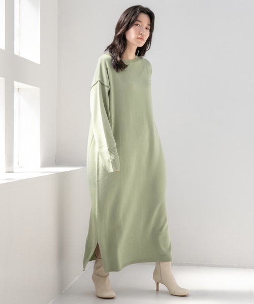 ◆素材アンチピリングアクリルを使用して毛玉になりづらい素材を使用しています。手洗い可能です。◆デザインアームホールと、後ろ中心を配色の天竺ロールでアクセントをつけたワンピース。前後2WAYで着用できるようになってます。 ◆スタイリング1枚でさらっと着て頂けるワンピース。パンツスタイルとのレイヤードスタイルも◎薄手なので、初秋にぴったりのワンピースです。
