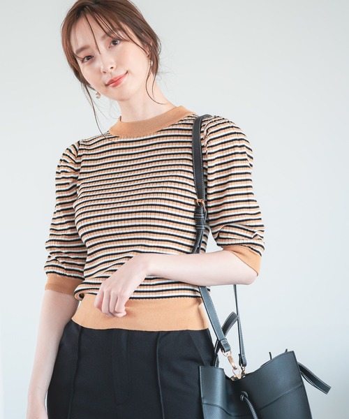 ハッと目を惹くマルチボーダーニット。 細ピッチのボーダーとハイネックでシルエットはコンパクト。 女性らしく着れるカジュアルボーダーです。 袖ギャザーのボリューム感もポイント。 裾を太めのリブにしているので、アウトスタイルもバランスよく決まります。 【素材】 リブ ドライタッチながら適度なやわらかさもあるのが特徴 ストレッチあり 透け感なし ーーーーーーーーーーーーーーーーーーーーーーー ▼ 商品のお気に入り登録 ▼ 完売カラーの再入荷通知や、ラスト1点の通知、 セールの通知も受け取ることができます。 ▼ ブランドのお気に入り登録 ▼ 新商品や再入荷など、 ブランドのお得な情報をいち早くお知らせ! ぜひご登録ください! ※屋内外の光や照明の当たり具合で、実際の商品の色味とカラー別画像の色味に違いが発生する場合がございます。 色味はスタジオ撮影の詳細画像にてご確認ください。 ※生地の寄り画像が最も実物に近い色味となります。
