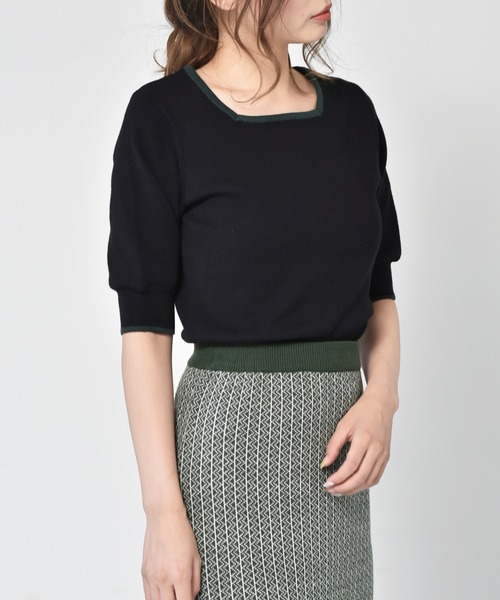 パイピングデザインがトップスをコンパクトに見せてくれるカラーニット襟口・袖口のバイカラーデザインが効いたカラーニット。コンパクトなシルエットに、スクエアネックでスマートな印象に。また、着丈もコンパクトに仕上げているのでINスタイルもキレイに決まります。ハイウエストのボトムと合わせトップスインするのも可愛い!シンプルなデザインなので、通勤スタイルや休日のお出掛けにも品よく着まわし出来る一枚です。※撮影環境やご覧のモニター環境によって実際の商品とお色味が多少異なってみえる場合がございます。ご理解の程何卒よろしくお願い致します。