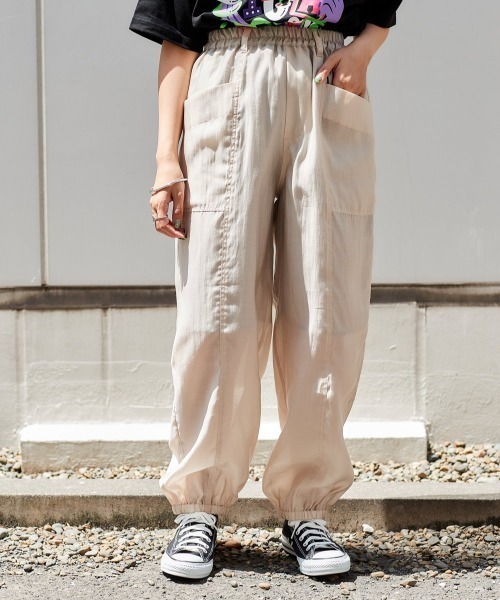 リラックス感があり、おうちファッションにも◎◇Point◇ウエストゴムなのでストレスフリーな着心地です。裾のゴムで足首をきゅっと細く見せる効果も。◇Material◇透け感のあるデザインですが、膝上まで裏地が付いているので安心して着用していただけます。◇Coordinate◇Tシャツと合わせてストリートコーデがおすすめです。さらっと着用していただけるので、おうちファッションにもぴったりです。