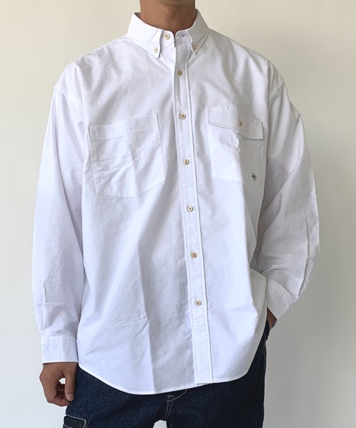 ペン差し付きのフラップポケットや、エルボーパッチのディテールがワーク感のあるオックスフォードシャツです。 襟元はきちんと感が出るボタンダウンを採用し、幅広いスタイルに融合するシャツになっています。 カジュアルなスタイルにも上品さをプラスできる一枚です。 太番手の糸を高密度に織り上げた丈夫なオックスフォードを使用しているので気軽に日常使いできます。 ポケットは通常シャツに比べ大き目なデザインで上蓋付きなので使い勝手の良いポケットになっています。 ・・・・・・・・・・・・・ ①伸縮性 ナシ ②シルエット ややゆったり ③生地の厚さ 少し厚め ④着心地 普通 ・・・・・・・・・・・・・・