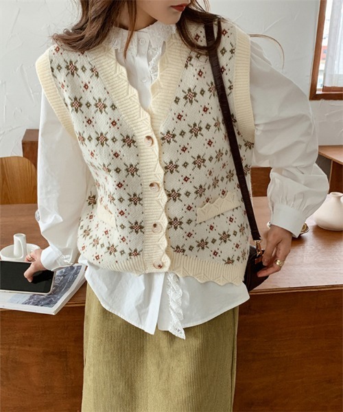 ・裾のヘムウェーブがコーデにアクセントをプラス!・ナチュラルなバイカラーがカジュアルなスタイルや淡色コーデにぴったり。・いつものコーデにプラスするだけでこなれ感UP!■ Detail オトナナチュラルなニットベストはいつものコーデにプラスするだけでこなれ感のあるスタイリングが完成◎春夏は半袖Tシャツ、秋はシャツブラウスなどインナーをチェンジしてロングシーズン楽しめる1枚です。■ Fabric ・やわらかくナチュラルな風合いのかぎ編みニット。ふわふわとした毛羽のあるソフトな肌触りがリラクシーに着こなせるアイテムです。■ Coordinate・Tシャツの上に合わせるだけでいつもと違う雰囲気に。マンネリ化しがちな夏コーデにオススメ◎・シャツや長袖カットソーに合わせたりインナーをチェンジしてロングシーズン楽しめます。・淡色コーデやカジュアルコーデ、ナチュラルコーデなど幅広いテイストにマッチ♪※店頭及び屋外での撮影画像は、光の当たり具合で色味が違って見える場合があります。またご覧いただきますモニターや使用環境により実際の商品と多少色味が異なって表示される場合がございます。予めご了承をお願いいたします。★商品のお気に入り登録→【カートに入れる】右側の♡をクリック完売カラーの再入荷通知や、ラスト1点の通知、セールの通知も受け取ることができます。★ブランドのお気に入り登録→ブランドタグのページからお気に入りをクリック新作商品や再入荷などブランドのお得な情報を受け取ることができます。※ご注文いただいた予約商品のお届け時期の確認は、注文履歴ページより行えます。※他のキャンペーンにより、期間中に価格が変動する場合がございます。※セールは予告なく終了させていただく場合がございます。