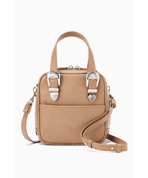 小さめのサイズが可愛いショルダーバッグ・コンパクトなサイズ感・アクセントになるバックルデザインのハンドル・取り外し可能なショルダーストラップ【スタッフレビュー】ウエスタン調の金具ハンドルをあしらったショルダーバッグ。小さいサイズながらマチがあるのでデイリーに必要な小物類が入れられます。肩掛けや斜め掛けできるショルダーは取り外し可能です。コーディネートに合わせやすいカラーで揃えています。