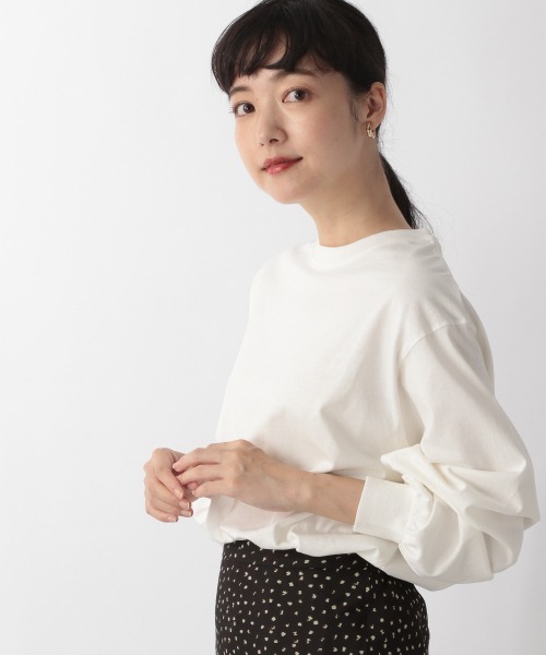 ◆素材 USAコットンを使用しています。加工で表面の毛羽をなくし、少しきれいに見えるいにしています。 ◆デザイン 袖にボリュームを持たせ、1枚でも可愛くなるようにしています。 着丈は長すぎないようにしているので、アウトでも着やすいです。 ◆スタイリング パンツ、スカートどちらとも相性のよいアイテム♪ 1枚でも可愛いですが、ビスチェなどのインナーとしても使えます。