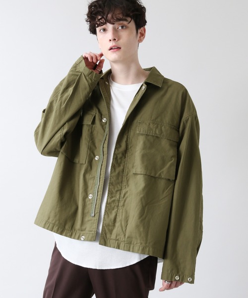 ーーー ミリタリーの代名詞ファティーグジャケットをベースに、今年らしくビッグシルエットで仕上げたブルゾン。 全体的にオーバーシルエットになっているので、今年らしくゆったりとしたサイズ感で本格的なミリタリーを楽しんでいただけます。 古着やリメイクといったヴィンテージ感のあるアイテムですので、秋のアウターにおすすめの一着です。 ーーー ブランドのアイデンティティでもあるワーク&ミリタリーを象徴する一着に仕上がってます。 加工感やルーズ感がありながらも、コットン100%でハリ感のある生地となってます。 胸元にある大きめなフラップポケットは昨年に引き続き大人気のディテールとなってます。 秋アウターとしては勿論ですが、ニットやパーカーを重ねて冬アウターとしても長いシーズン着用していただけます。