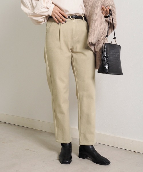 着回し力抜群のテーパードパンツ。 フロントのタックデザインがすっきりとした印象にしてくれます。 シンプルなアイテムなので様々なトップスと合わせやすいのも嬉しい◎ Tシャツやスウェットと合わせたカジュアルな着こなしはもちろん、 ブラウス等のフェミニンなアイテムとのスタイリングもおすすめです。 バックウエストはゴム仕様でストレスフリーな穿き心地です。 ベルトループ付きなのでお手持ちのベルトとのコーディネートも楽しめます。 肌触りの良いコットン100%。 柔らかく、履き心地抜群のアイテムです。 - - - - - - - - - - - - - - - - - - - - - - - - - - - - - - - - - 透け感:なし 裏地:なし 伸縮性:なし 光沢感:なし - - - - - - - - - - - - - - - - - - - - - - - - - - - - - - - - - ※ 撮影時の照明などの環境と、モニターに表示される色味がメーカーにより変わってしまう等の理由により、実際にお届けする商品と、ご覧になられているアイテムの色が若干異なる場合がございます。ご了承下さいませ。