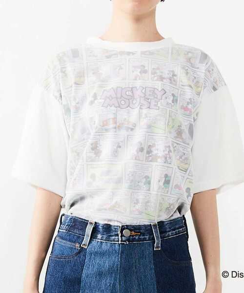 新宿エリアのLUMINEで展開されるディズニーコレクションシリーズ。 新しさと懐かしさのあるミッキーのコミックアートを使ったTシャツはストリートな雰囲気を感じさせるメッシュ使いのデザインです。 コミックのカラフルな色使いを活かしたマルチカラーとモノトーンとの2色展開。