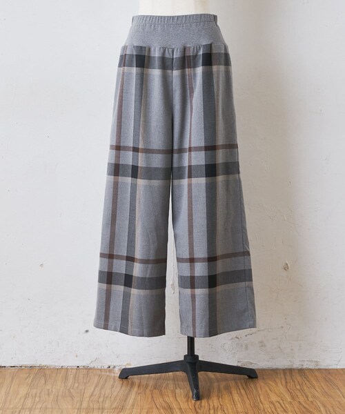 ウール見えする生地を使用した温かみのあるチェックパンツ。素材はポリエステルを使用しているので、しわを気にせず楽に履いて頂けます。ウエストリブなのでラクに履いて頂けます。大き目チェックが大人な印象に。3サイズ展開で身長にあわせてぴったりサイズを選べるのがうれしいポイント。グレーベースとネイビーベースの二色展開。bottom