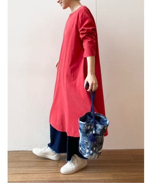 デニム地にジャガード織りを施したショルダーバッグ。本体部分が巾着タイプになっていて、マチが円形なので、コロンとした形です。内側の無地部分が巾着になっており、ジャガード部分は外側がポケットになっていて、小物の整理もしやすいデザイン。マチも高さも意外とあるので、折り畳み傘やタンブラーなども入る便利なサイズ。 ※ジャガードの特性上、表面がひっかかりやすい場所がございます。ご留意くださいませ。 awdenim goods awchek