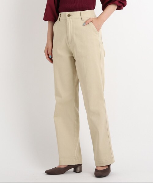 【デザイン】 ストレッチが効いて履き心地が良い快適なデニム素材を使用したパンツです。 センタープレス入りなのでカジュアル過ぎずかっちりした印象なので甘目のブラウスと合わせて上品な大人カジュアルなスタイルが楽しめます。 シルエットは膝を入れて裾に掛けて少し広がったセミフレアーにになっています。 膝位置を高めにすることで膝下が長く見えるのでスタイルアップして見えます。 ブルーとインディゴのデニム2色に加え、ニュアンスベージュのカラーをアクセントに差しています。 濃いインディゴカラーはより秋ムードもあり大人の方でも取り入れ易いカラーとなっています。 ※ポケット数:横×2、後ろ×2 【生地感】 伸縮性があり、さらりとした肌触りの生地感です。 ※裏地なし ※01・04サイズは、WEB限定となります。 モデル情報:身長162cm B72 W57 H82 着用サイズ:02(M) 店舗へのお問い合わせ商品番号:768-63019 ●製品寸法: 01(S):W67cm H93cm 股下70cm 前股上28cm 02(M):W70cm H96cm 股下71cm 前股上28cm 03(L):W73cm H99cm 股下72cm 前股上28cm 04(LL):W76cm H102cm 股下73cm 前股上29cm 備考: